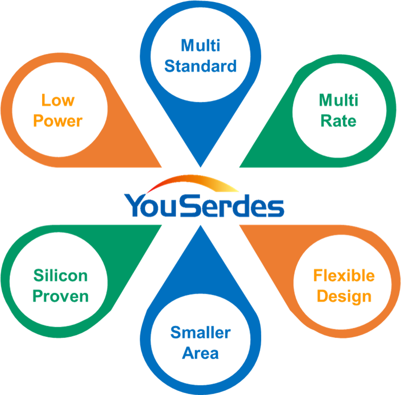 YouPHY-Serdes provides 2.5-32Gbps multi-rate SERDES IP which is designed for smooth integration of Multiple SERDES lanes demonstrate good performance class performance, area and power. The programmable PHY supports major standards such as PCIe Gen 4.0/3.0/2.0/1.0, USB 3.1/3.0, XAUI, SATA Gen 3.0/2.0/1.0, CEI-11G-LR, 10GBase-KX4, JESD204B, SGMII/QSGMII, RAPID I/O, HSSTP (Trace Port), V-By-One, DisplayPort and HMC.