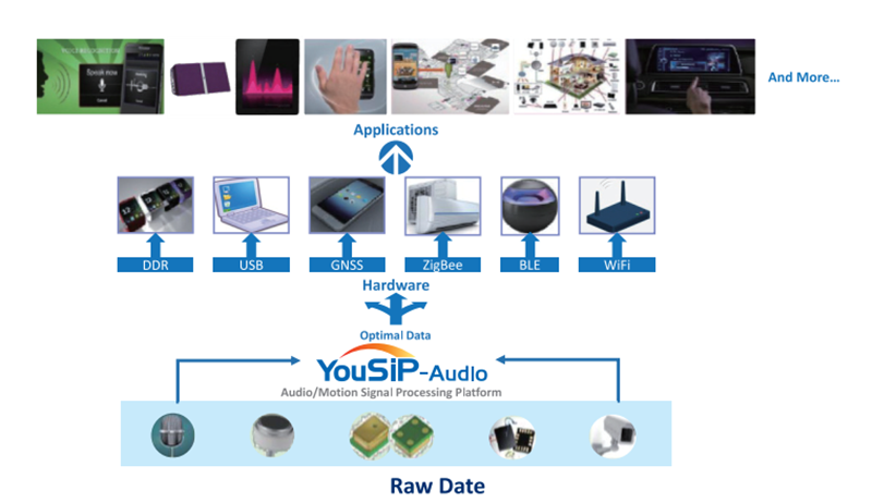 YouSiP-Audio develops a total hardware solution to collect the raw audio, voice, motion, ultrasonic, and image signal data, and then passes them to the host equipment.