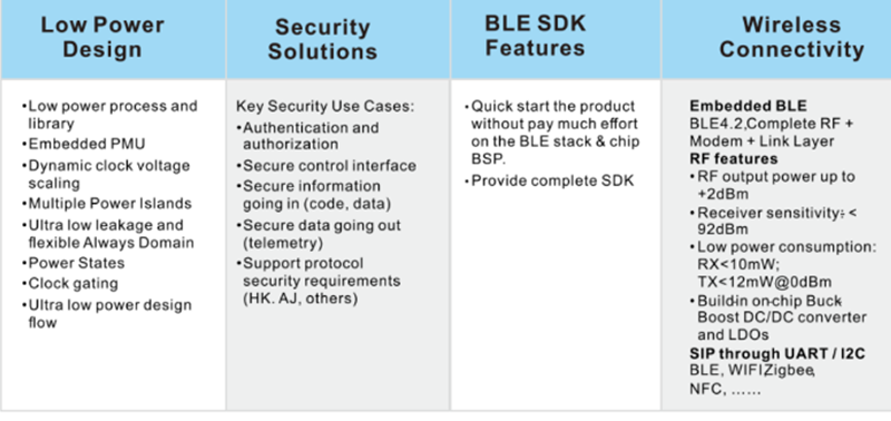 YouSiP-IoT is a comprehensive platform solution designed for emerging application as IoT based on SMIC 55nm low leakage (LL) and 130nm Mixed signal Low leackage(LL) process which can provide embedded non-volital flash memory as well. This solution integrates ARM Cortex Mx series MCU and CEVA TeakLite or MM series DSP, involves WiFi, Bluetooth/BLE interfaces, which can connect to a series of different sensors. YouSiP-IoT platform can assist customer to reduce the processing delay time, enhance the data security, improve the data rate and reduce power consumption of their SoC design, which is adopted in battary power supply environment as smart home, IoT and wearable devices with excellent low power managment.